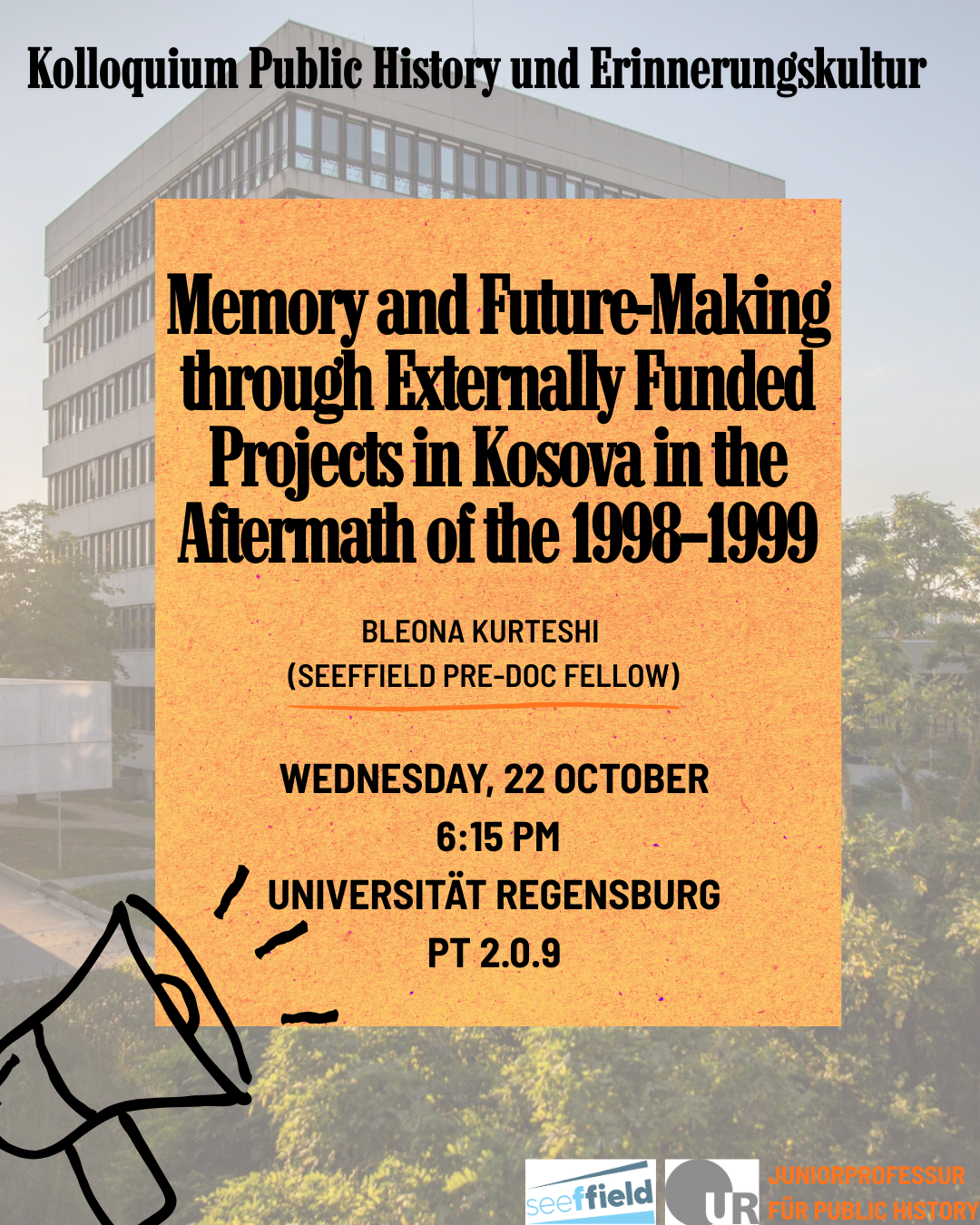 Invitation to the first session of the Colloquium on Public History and Memory Culture where our Pre-Doc Fellow-Bleona Kurteshi-presents her research.