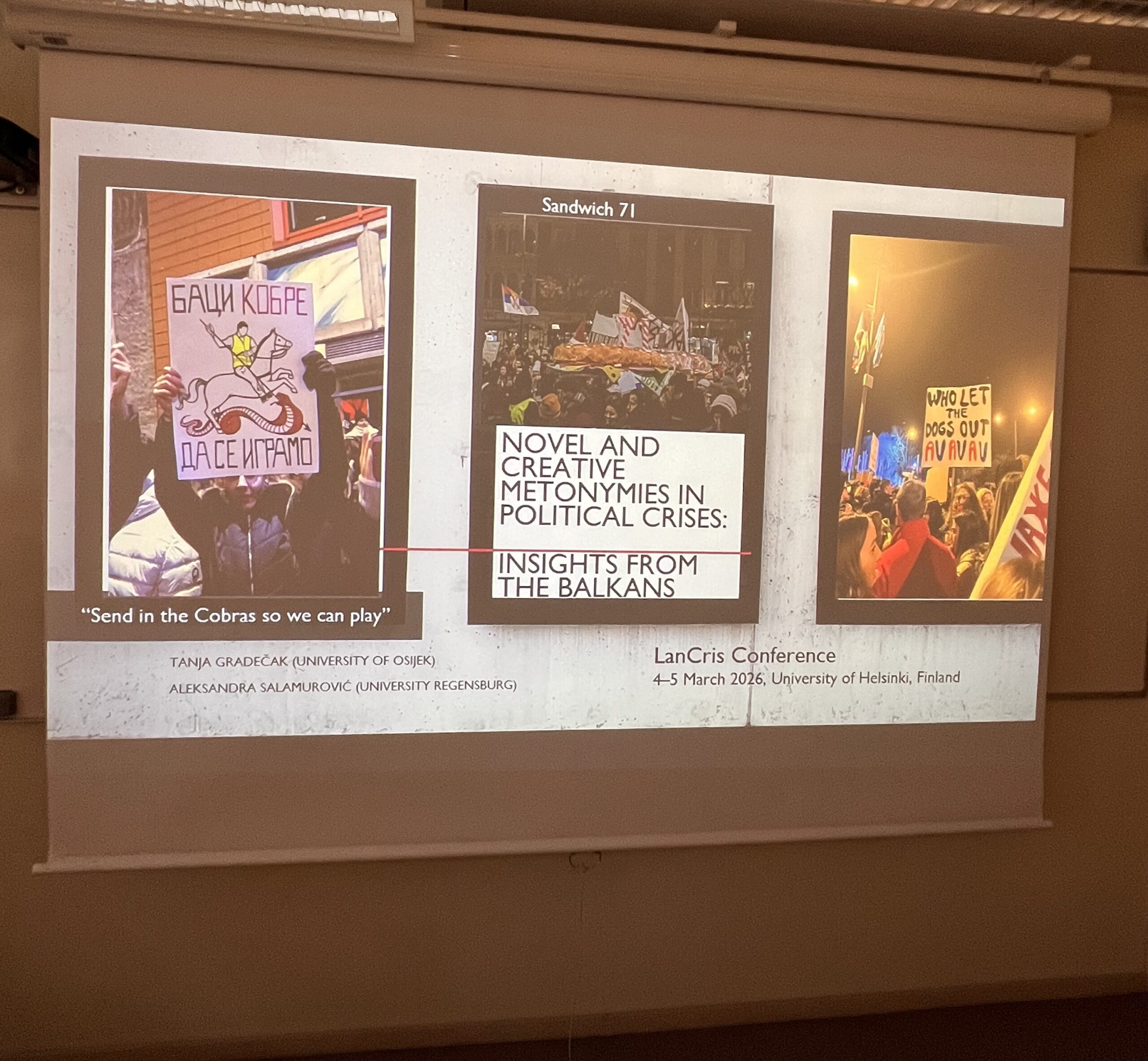 Dr Aleksandra Salamurović (seeFField Academic Coordinator, University of Regensburg) and Prof. Dr Tanja Gradečak (University of Osijek, seeFField project partner) presented their joint research at the international conference Languaging Crises at the University of Helsinki from 4-5 March 2026.